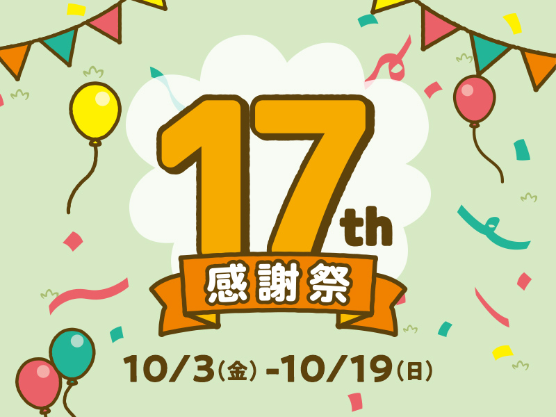 【10/3(金)~10/19(日)】17周年 感謝祭 ~ 17年の感謝の気持ちを込めた17日間【仙台泉プレミアム・アウトレット】